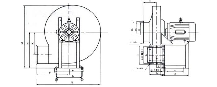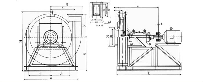 結構特點: №.4-6.3主要由葉輪、機殼、進風口、支架等組成;№.7.1-16 主要由葉輪、機殼、進風口、傳動組等組成。